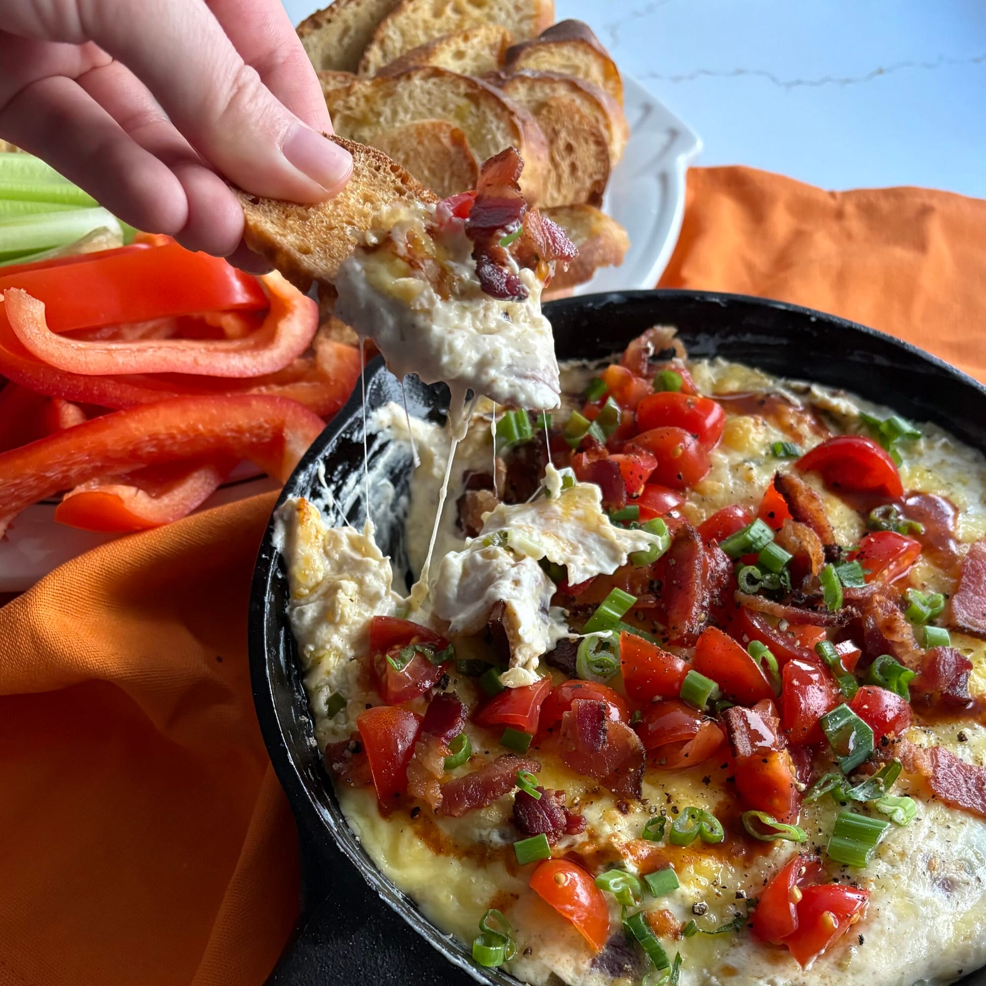 Bacon-Cheddar Dip with Baguette Chips