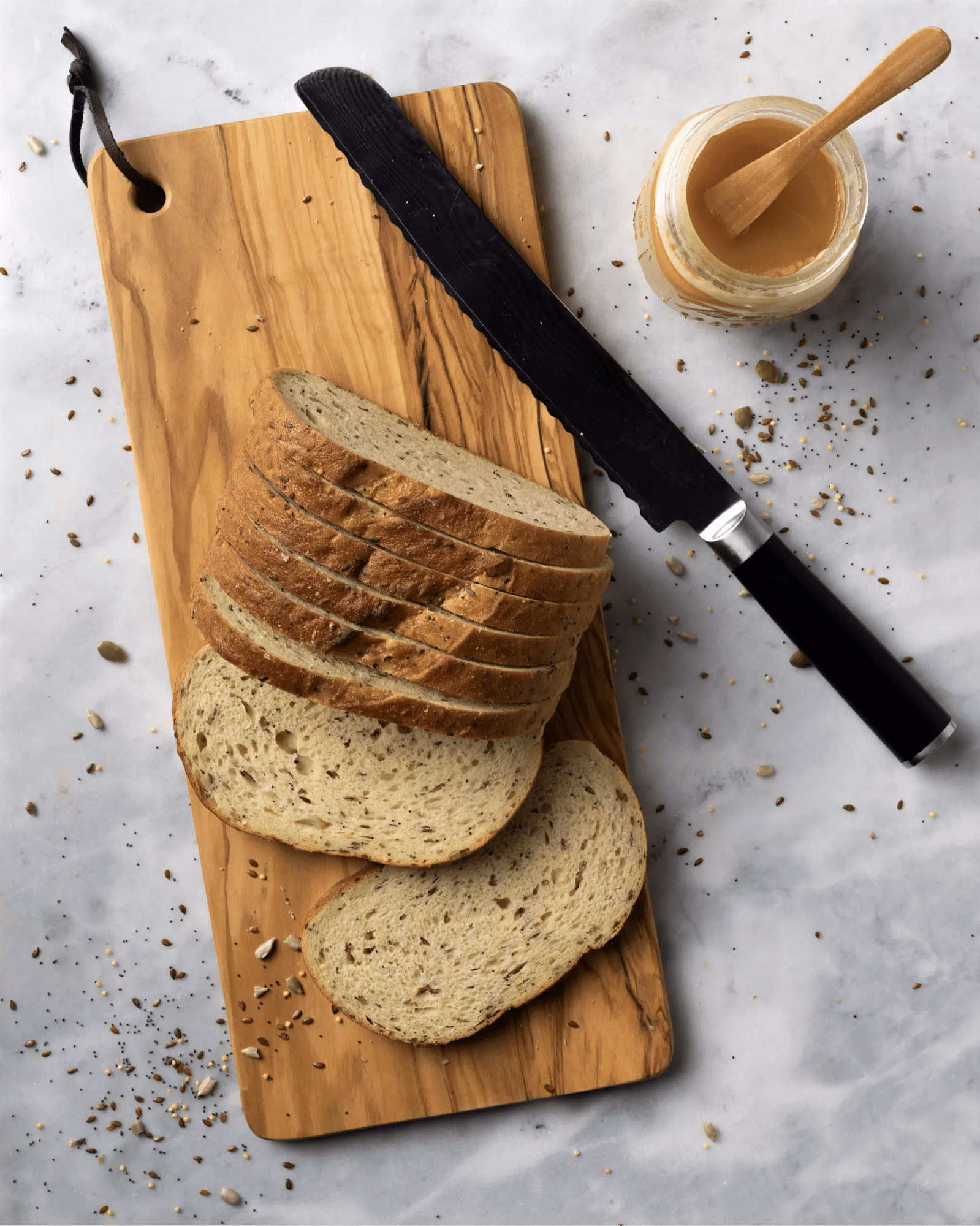 Our whole wheat sourdough, loaded with seven grains and seeds including flax, sunflower and pumpkin. Delicately sweetened with a touch of real honey.