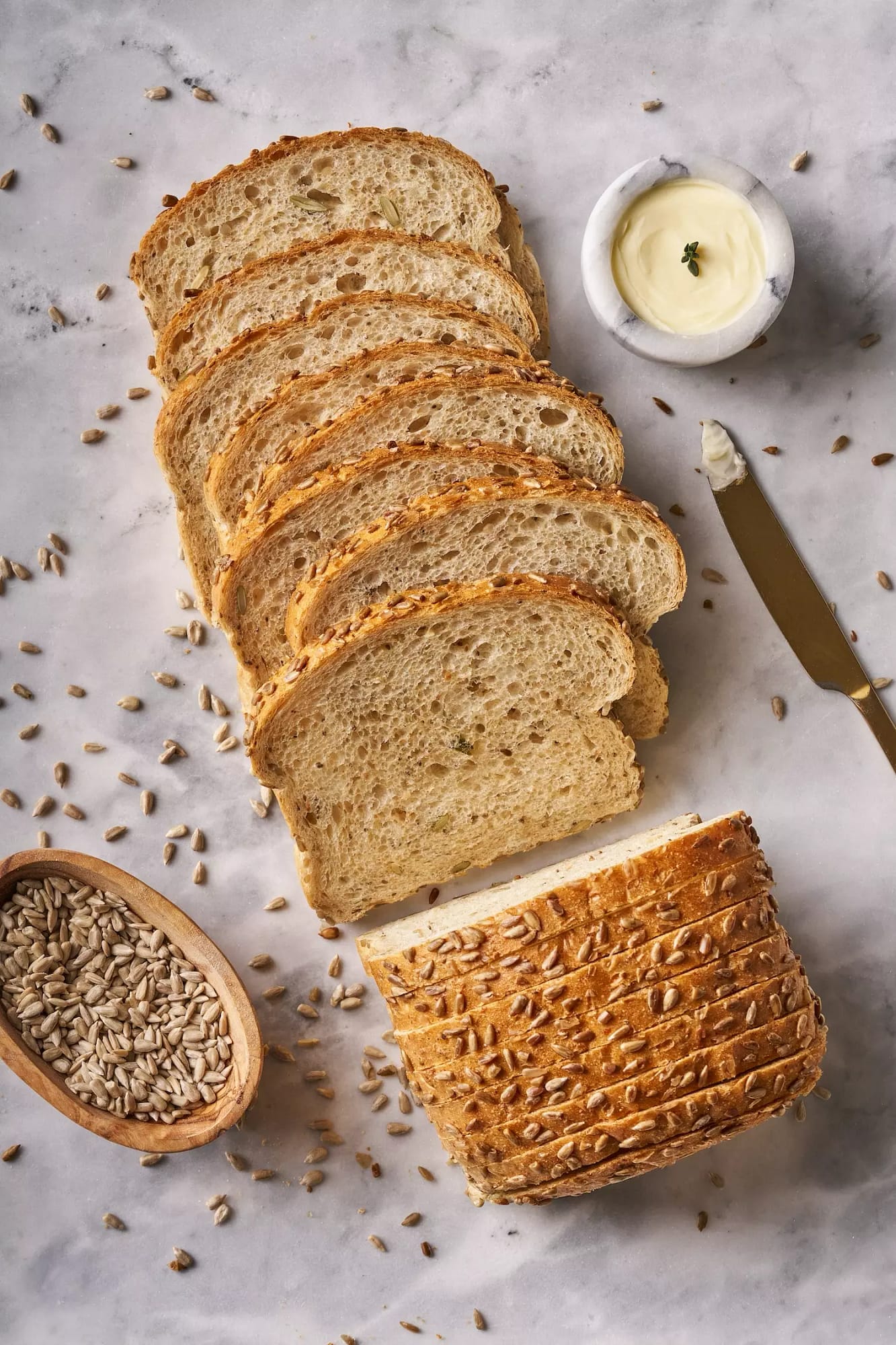 This organic Sprouted Seeds loaf is baked with a hearty 5-seed blend of sunflower, pumpkin, flax, millet, and poppy seeds for wholesome, delicious flavor in every bite.