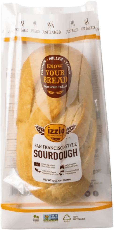 Izzio’s best-selling bread is made in the tradition of San Francisco’s most flavorful sourdoughs. The thick crust is achieved by baking this bread directly on a stone hearth in Izzio’s custom built Italian oven. The tangy, moist crumb is a result of careful, long fermentation and lots of love.